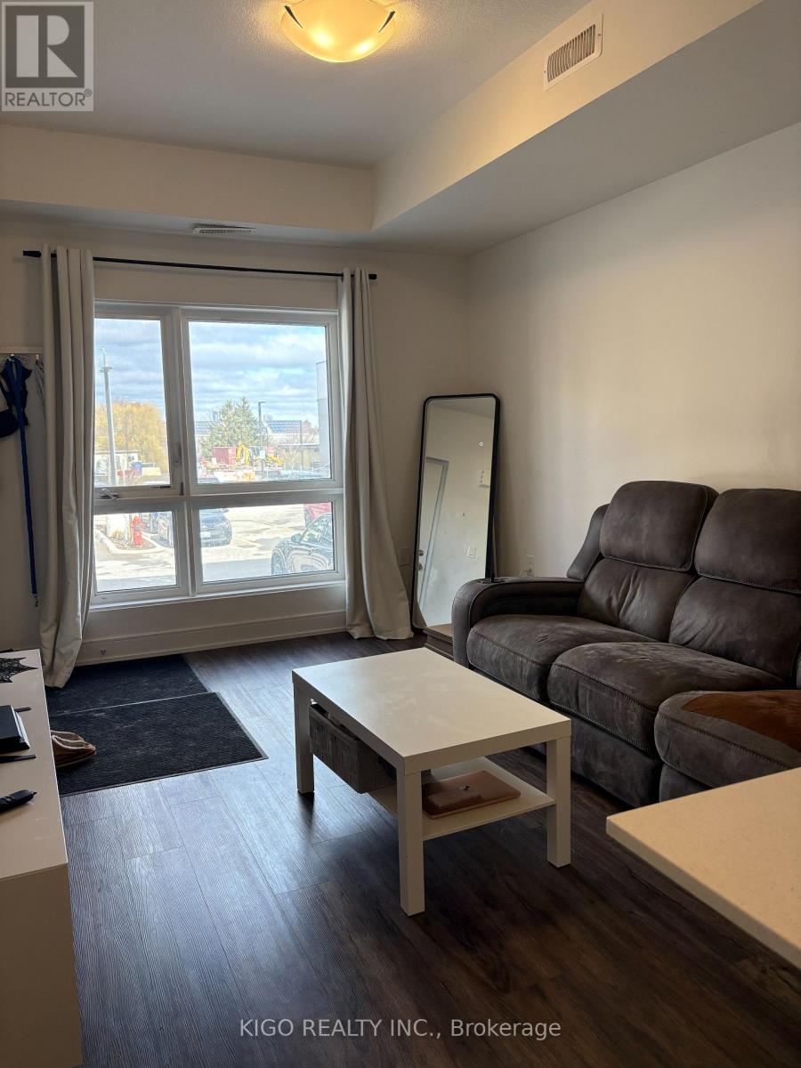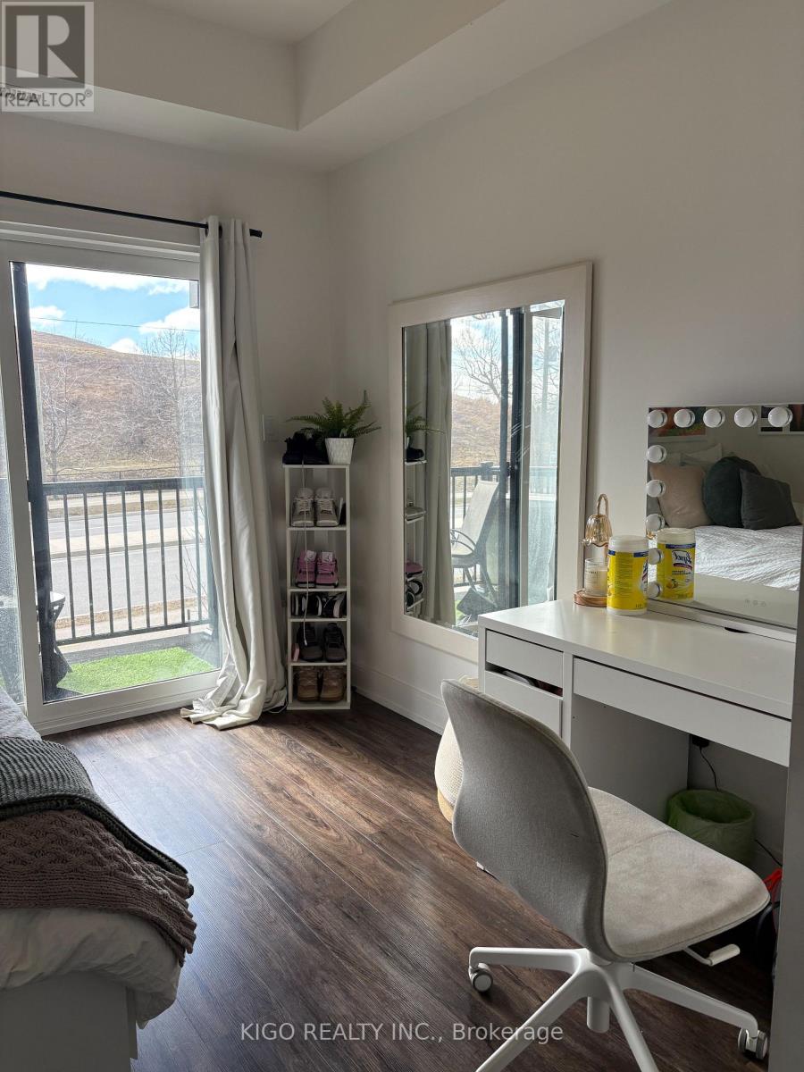 No stairs! Modern 2-bedroom, 2-bathroom stacked townhouse with a private balcony and one parking spot. Features stainless steel appliances, quartz countertops, and vinyl flooring throughout (no carpet). Functional open-concept living and dining area, spacious kitchen with ample storage, in-suite laundry, and utility room. Primary bedroom includes a 3-piece ensuite and balcony, plus a second 4-piece bathroom. Located in the heart of Laurentian Commons with easy access to Hwy 7/8, shopping, transit, and parks including McLennan Park. Utilities extra. (id:50787)