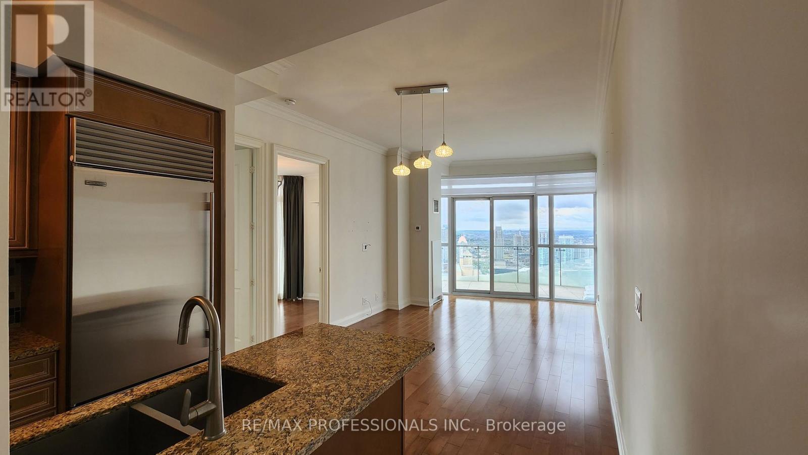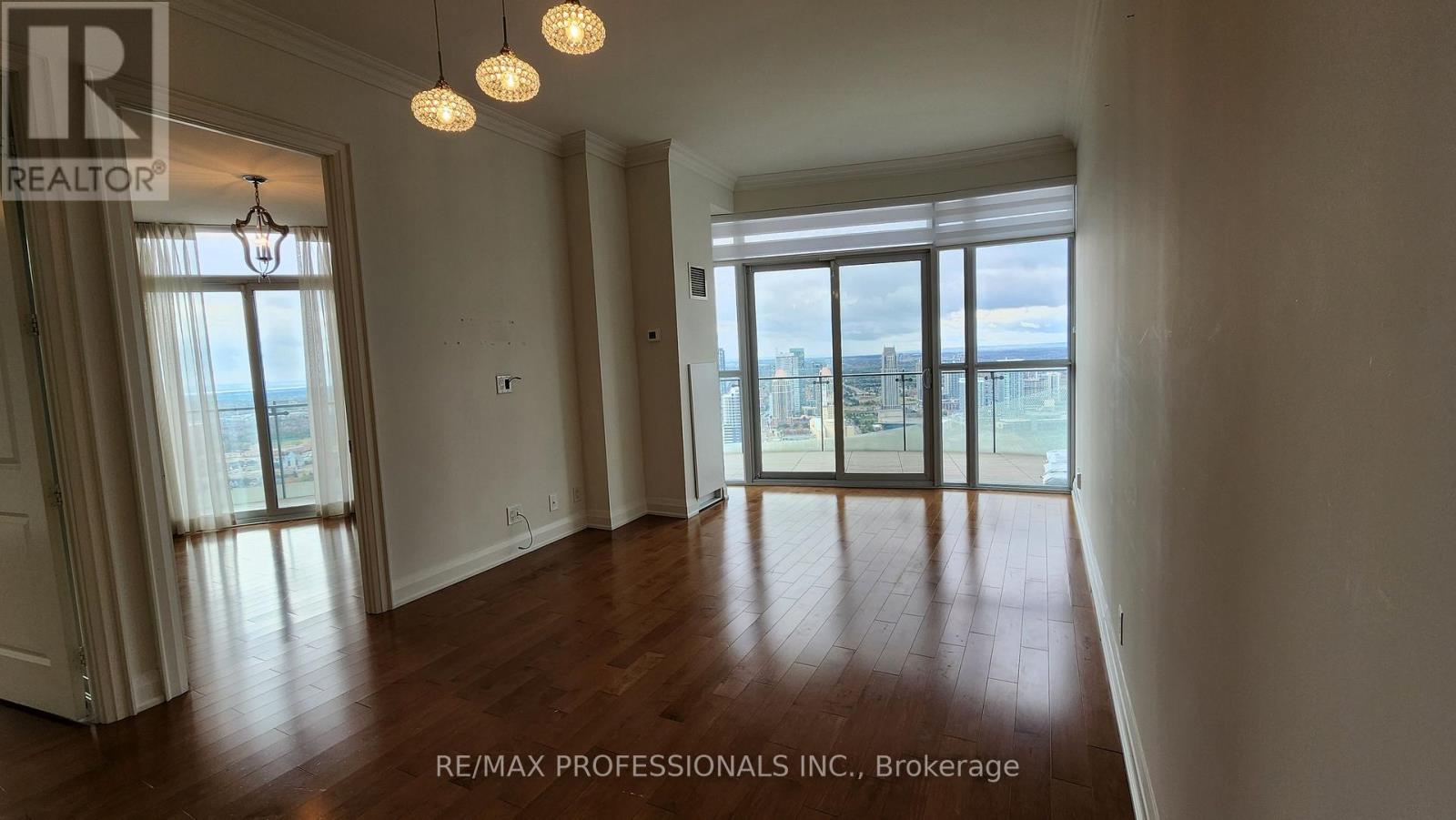 Welcome to the Heart of Mississauga's City Centre! This stunning 2+1 lower penthouse offers an open-concept floor plan, soaring extra-high ceilings, and floor-to-ceiling windows that frame spectacular, unobstructed views stretching to Lake Ontario and the Toronto skyline. Featuring a carpet-free interior with laminate flooring throughout, this unit includes a separate den, ideal for a home office or nursery, plus three walkouts to a suite-length balcony where you can soak in breathtaking sunrises and sunsets. Premium finishes abound, with a modern kitchen boasting granite countertops, stainless steel appliances, and ample cabinet space. Both bedrooms feature mirrored double closets, full-length windows, and private balcony access. The primary bedroom comes complete with an ensuite bath for added luxury. Additional highlights include double-car parking and access to world-class amenities at the iconic Marilyn Monroe Towers, including a state-of-the-art fitness centre, indoor and outdoor pools, a party room, and 24-hour concierge service. Enjoy all that the vibrant Mississauga City Centre has to offer! Shopping, restaurants, transit, and entertainment options. Across from Square One Shopping Centre, Celebration Square, Go Train, and steps to the "coming soon" LRT. Don't miss this exceptional opportunity to live in one of Mississauga's most recognizable addresses! (id:50787)