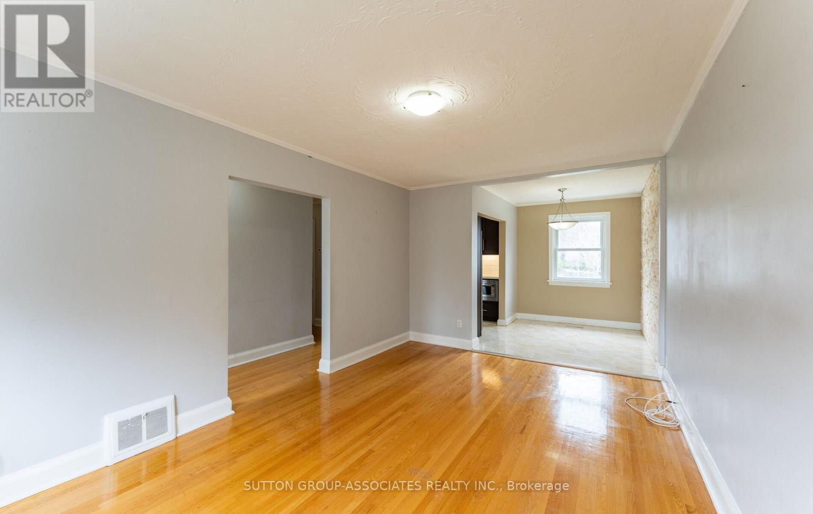 Welcome to this bright and spacious 3-bedroom, 1 Bathroom main floor apartment, where natural light pours in throughout the day, creating a warm and inviting atmosphere from the moment you walk in.The open-concept layout offers generously proportioned living and dining areas - ideal for both everyday living and entertaining guests. Beautiful hardwood floors flow seamlessly throughout the unit, adding warmth and timeless character to every room.Enjoy the added convenience of in-suite laundry, keeping everything you need right at home. With three well-sized bedrooms, this unit delivers the space and comfort you've been looking for. Close to Transit, Shopping, Schools, and Hwys. (id:50787)