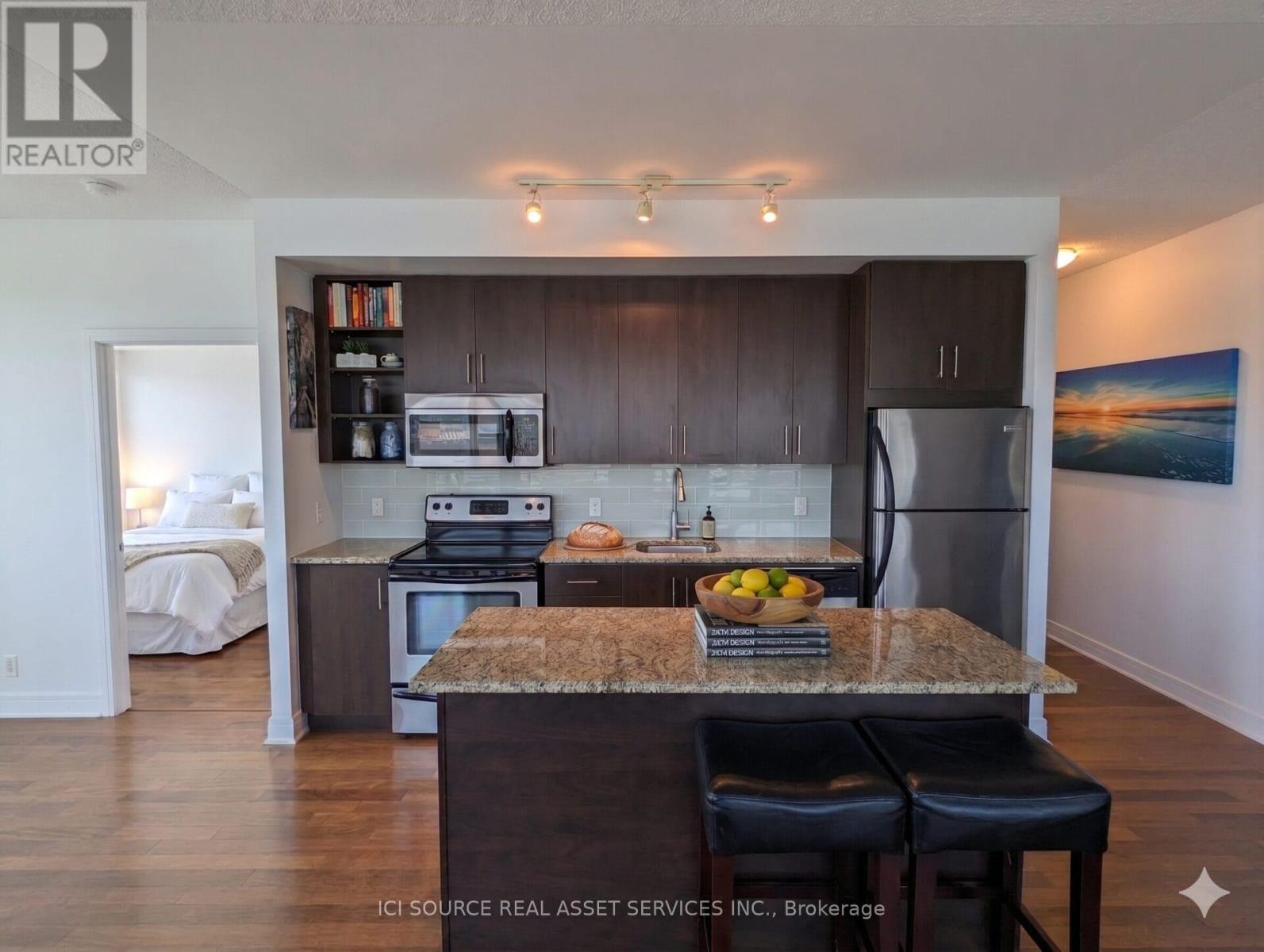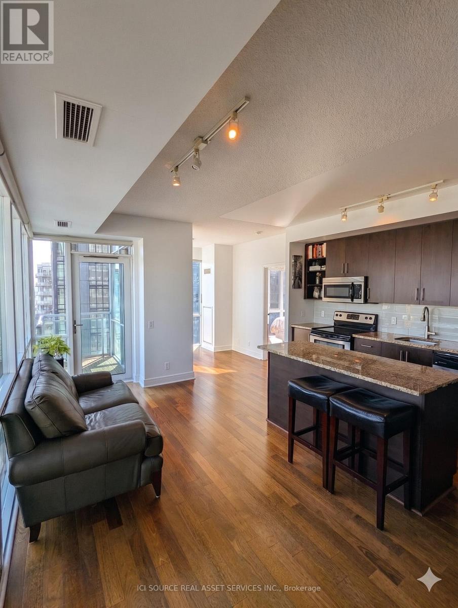 $720 MonthlyExperience the perfect blend of historic charm and modern luxury in the highly acclaimed Vu by Aspen Ridge. Suite N1202 is an expansive 743 sq. ft. corner residence designed for the sophisticated urban professional. The Suite Bathed in natural light from its North-East orientation, this 1-bedroom plus den home features: Architectural Details: Soaring 9-foot ceilings and wrap-around floor-to-ceiling windows. Versatile Layout: A dedicated den perfect for a home office and seamless hardwood flooring throughout. Chef's Kitchen: Granite-topped center island, premium stainless steel appliances, and an open-concept flow. Outdoor Space: Two private balconies offering stunning views of the Toronto skyline. The Extras & Lifestyle Premium Parking: An oversized "Goldilocks" end-unit spot with no adjacent neighbors, plus a private storage locker. Building Amenities: 24-hour concierge, two state-of-the-art gyms, and a legendary rooftop terrace with BBQs and cabanas. Location Highlights With a near-perfect Walk Score, you are steps from the St. Lawrence Market, the Financial District, and St. James Park. Enjoy easy access to the TTC, George Brown College, and top-tier dining on Front and Adelaide Streets. Inclusions: S/S Fridge, Stove, Dishwasher, Microwave; Washer/Dryer; Designer Lighting and Custom Window Coverings. *For Additional Property Details Click The Brochure Icon Below* (id:50787)