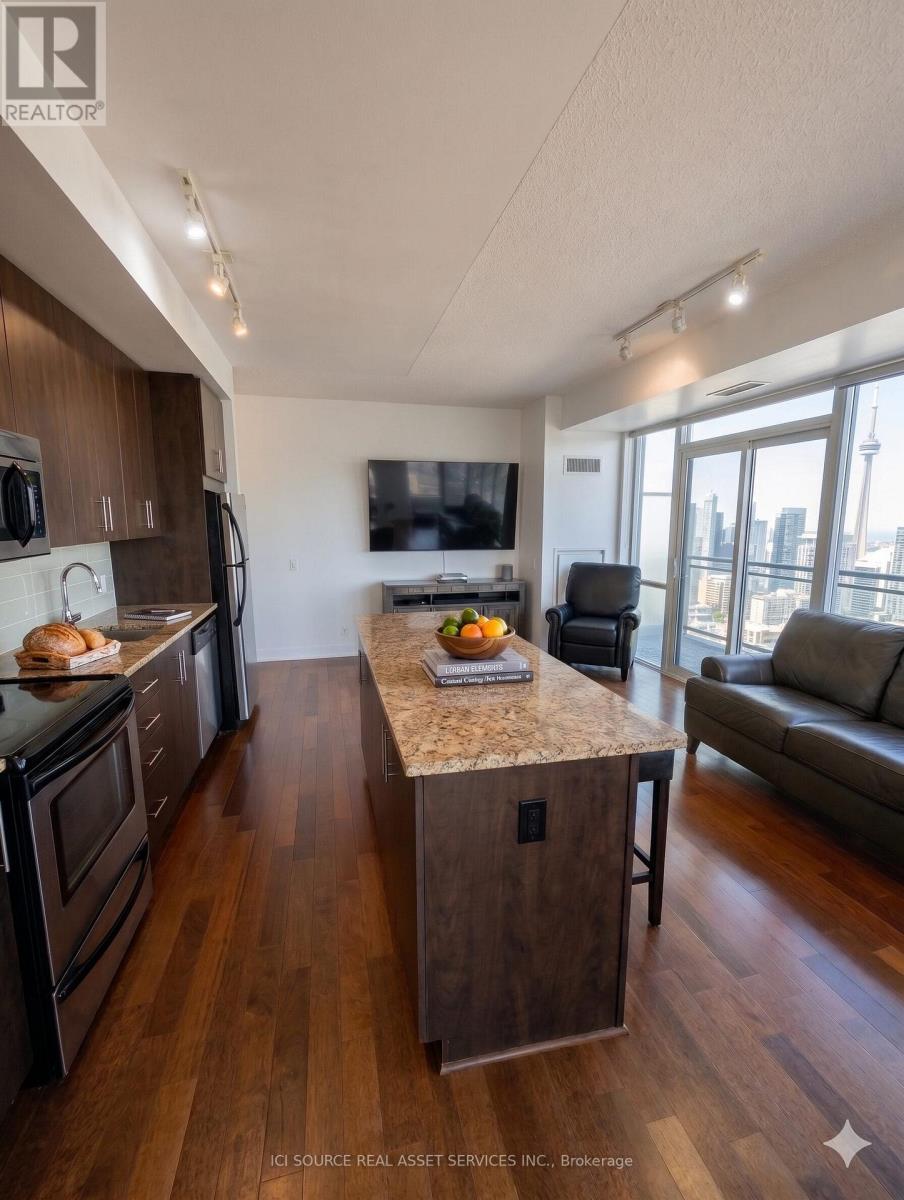 $720 MonthlyExperience the perfect blend of historic charm and modern luxury in the highly acclaimed Vu by Aspen Ridge. Suite N1202 is an expansive 743 sq. ft. corner residence designed for the sophisticated urban professional. The Suite Bathed in natural light from its North-East orientation, this 1-bedroom plus den home features: Architectural Details: Soaring 9-foot ceilings and wrap-around floor-to-ceiling windows. Versatile Layout: A dedicated den perfect for a home office and seamless hardwood flooring throughout. Chef's Kitchen: Granite-topped center island, premium stainless steel appliances, and an open-concept flow. Outdoor Space: Two private balconies offering stunning views of the Toronto skyline. The Extras & Lifestyle Premium Parking: An oversized "Goldilocks" end-unit spot with no adjacent neighbors, plus a private storage locker. Building Amenities: 24-hour concierge, two state-of-the-art gyms, and a legendary rooftop terrace with BBQs and cabanas. Location Highlights With a near-perfect Walk Score, you are steps from the St. Lawrence Market, the Financial District, and St. James Park. Enjoy easy access to the TTC, George Brown College, and top-tier dining on Front and Adelaide Streets. Inclusions: S/S Fridge, Stove, Dishwasher, Microwave; Washer/Dryer; Designer Lighting and Custom Window Coverings. *For Additional Property Details Click The Brochure Icon Below* (id:50787)