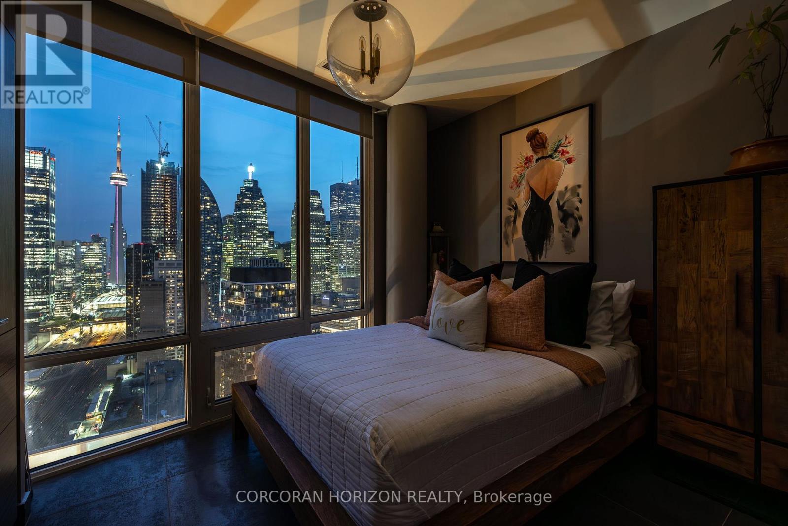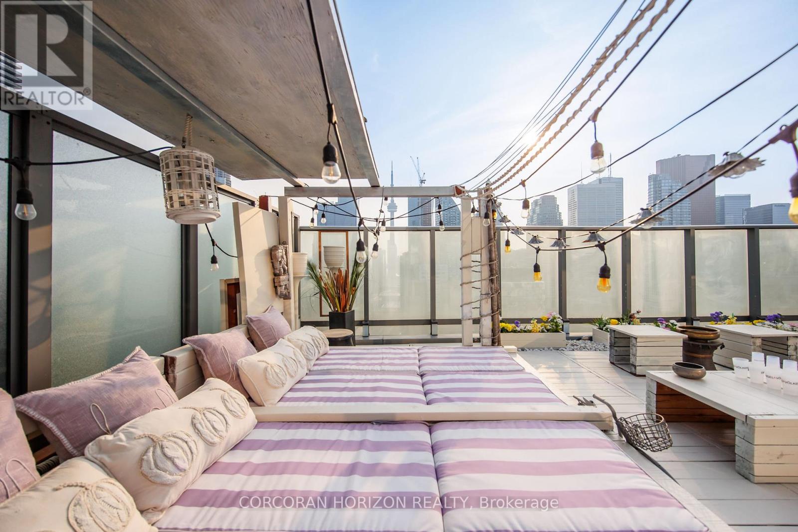 $1,069.20 MonthlyBoasting nearly 2,000 sq. ft. of total living space-with 1,300 sq. ft. indoors and a 600 sq. ft. terrace that blends seamlessly with the main level-this two-storey loft penthouse offers a rare, flowing layout perfect for year-round entertaining and effortless indoor-outdoor living.Welcome to a residence that redefines luxury: a truly one-of-a-kind penthouse and the only suite in the building featuring three skylights, infusing both levels with uninterrupted natural light. With 10-foot ceilings and floor-to-ceiling windows, every room frames dramatic, unobstructed views of the city, lake, and CN Tower, easily one of the very best views downtown. Every detail has been meticulously customized-from the sculptural staircase to the bespoke window treatments and abundant integrated storage-creating a home that is equally refined and functional. The chef-inspired kitchen is outfitted with Wolf and Sub-Zero appliances, designed to elevate everyday living and exceptional hosting.Step onto the expansive terrace, fully equipped with a water line and gas BBQ connection, and experience a true entertainer's haven. From elegant dinner parties to Sunday brunch to quiet nights under the stars, the outdoor space becomes an extension of your lifestyle.Whether it's morning coffee beneath the skylights or evening cocktails against breathtaking city views, this residence transforms the ordinary into the extraordinary. With chic design, rare exclusivity, and unmatched vistas, this 2-bedroom, 3-bathroom penthouse is more than a home-it's a statement of elevated living high above the city. (id:50787)