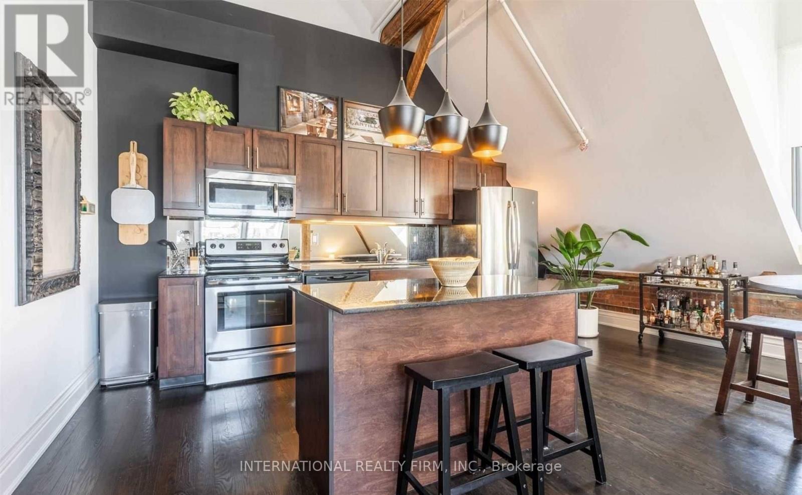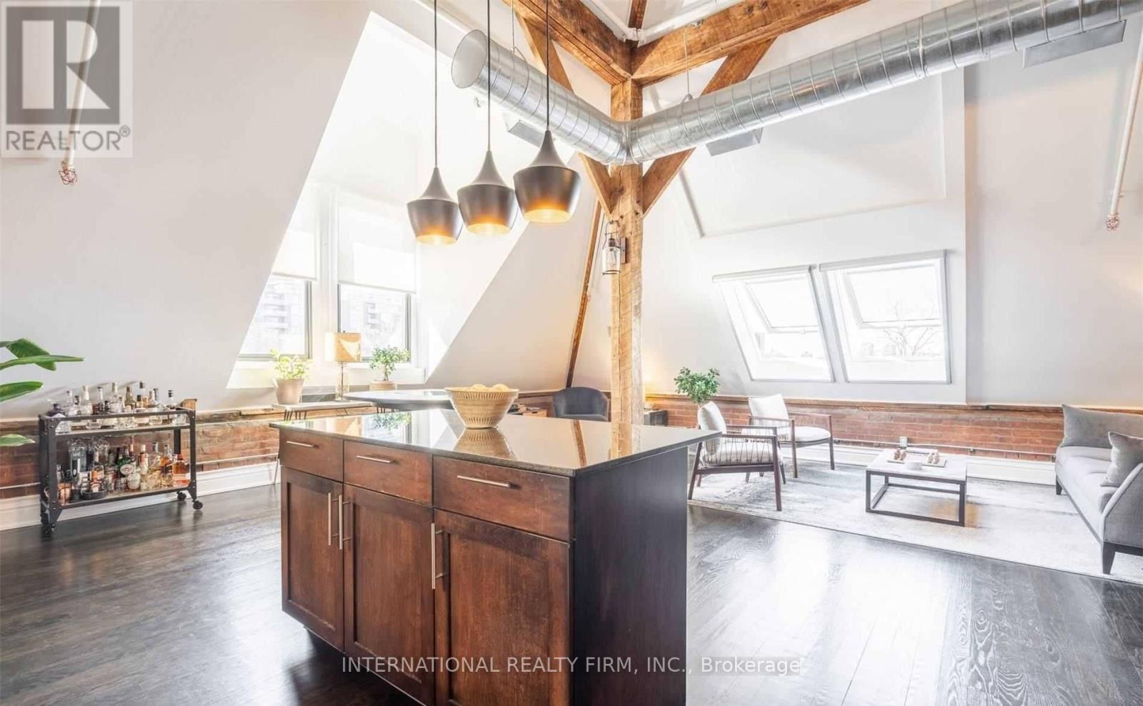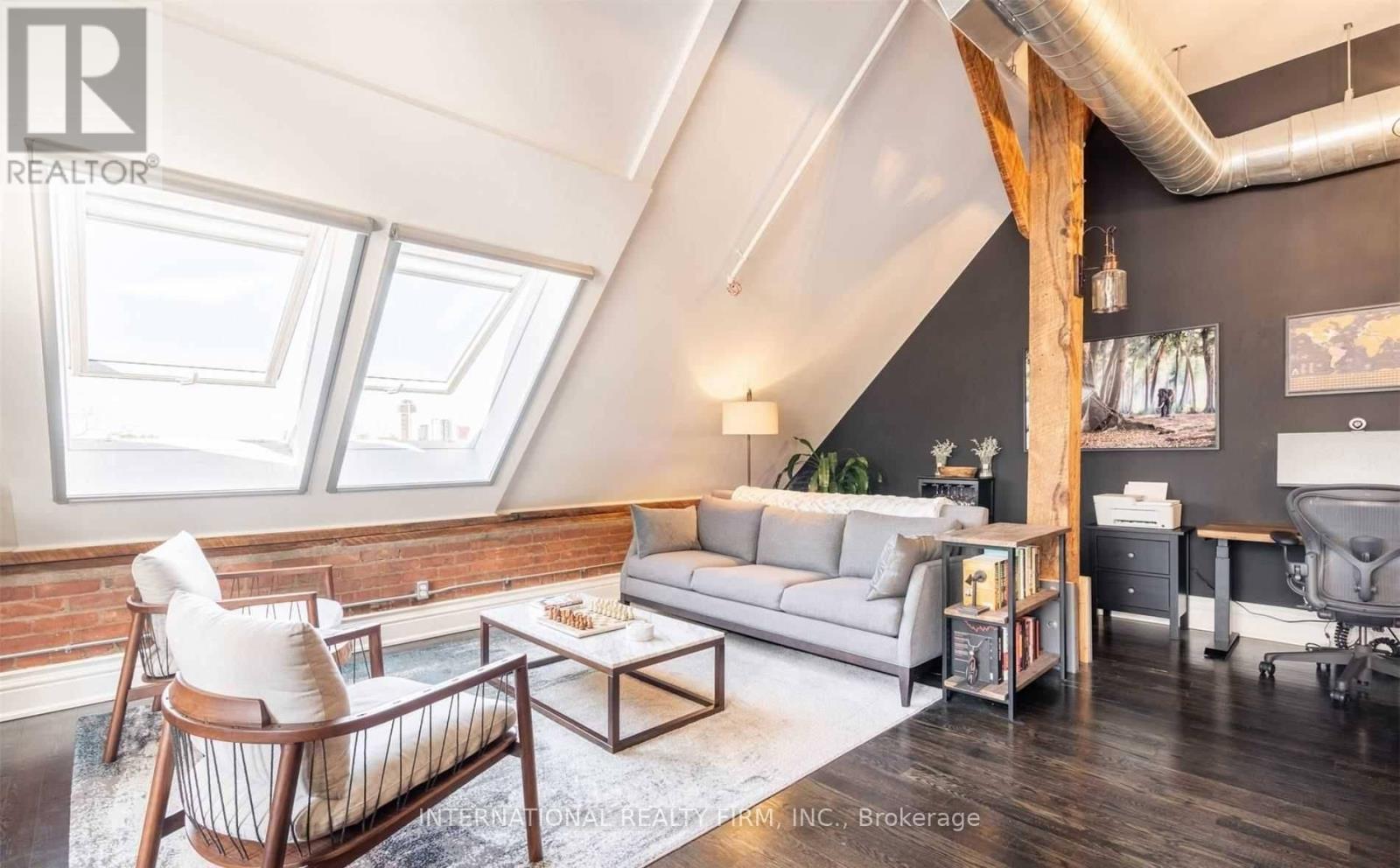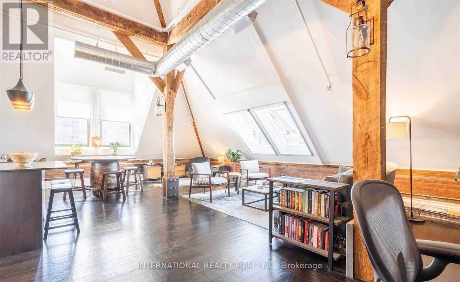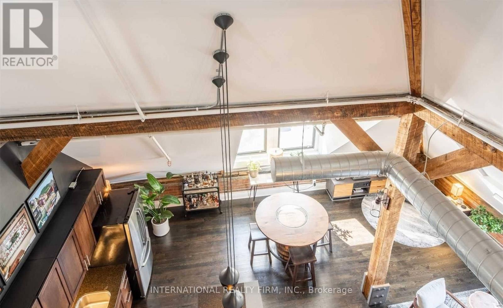 Experience the drama of true hard-loft living in PH16 at the iconic Stinson School. This isn't just a condo; it is 1,688 sq ft of architectural history. You are immediately greeted by soaring 20-foot ceilings, original exposed brick, and massive skylights that flood the space with natural light. The main floor is an entertainer's dream with rustic timber beams and warm hardwood floors. Upstairs, the layout separates "living" from "resting" with a dedicated executive den featuring a cozy fireplace-perfect for a home office. The primary retreat offers a massive walk-in closet and a spa-inspired 5pc ensuite. South-west facing, you get breathtaking sunset views over the Escarpment and city skyline. Walkable to the GO Centre and hospitals. This is a trophy property-don't miss it. (id:50787)