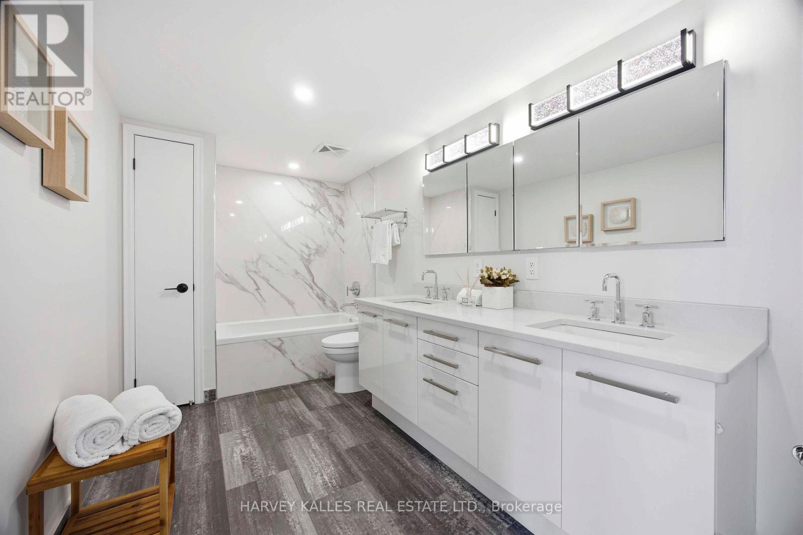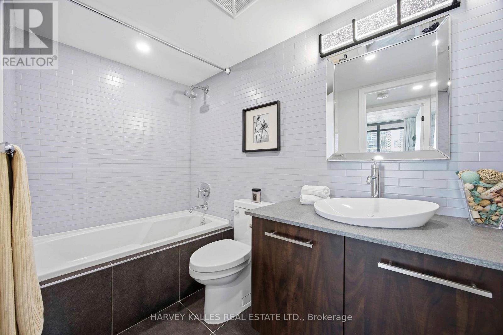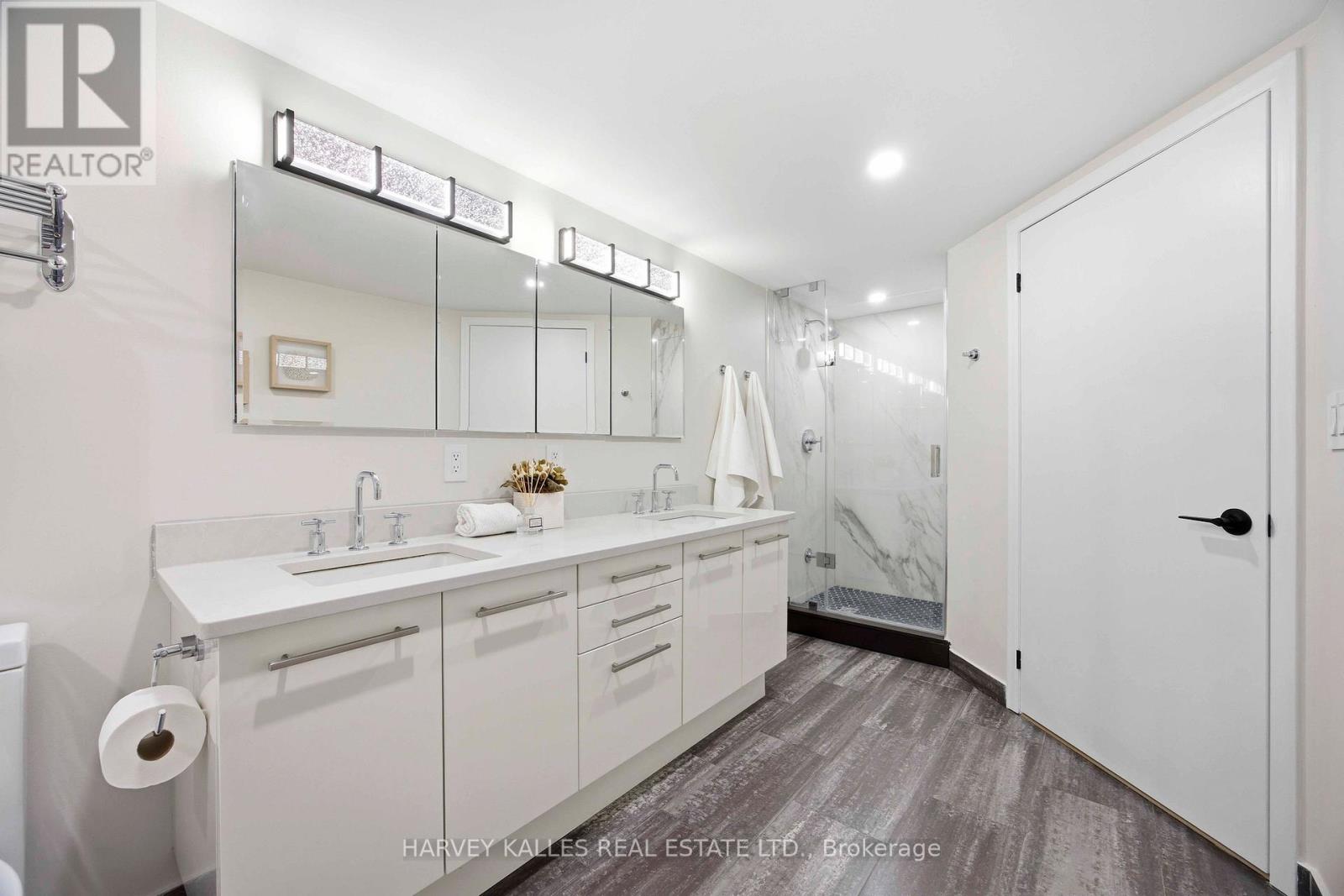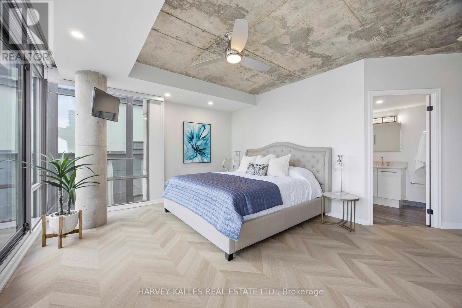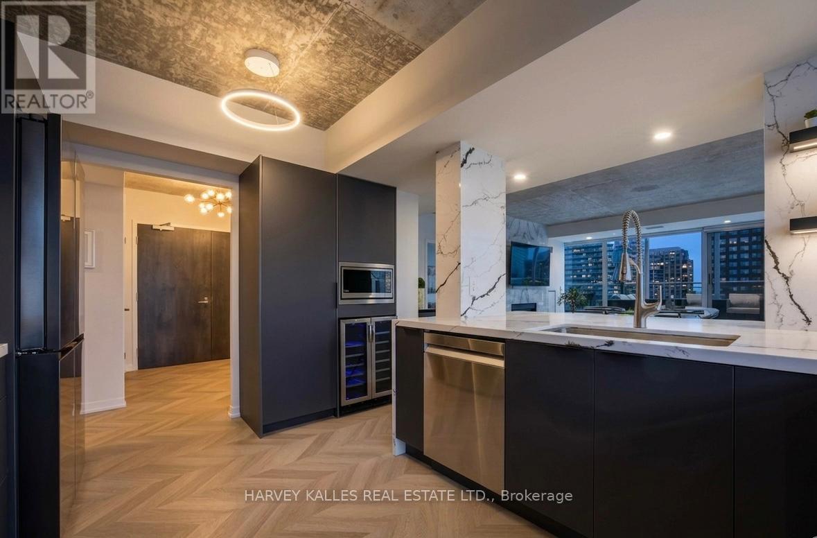 Elevated above the city on a penthouse level shared by just two residences, this extraordinary suite delivers a true sense of exclusivity and sophistication in the heart of downtown. Spanning over 1,600 sq ft indoors and complemented by more than 500 sq ft of private outdoor spaces. Every detail has been thoughtfully curated, with over $200K in high-end upgrades throughout: brand new luxury herringbone flooring, a completely rebuilt designer kitchen, updated lighting and pot lights, and a striking fireplace feature wall clad in Italian porcelain. The expansive sundeck terrace is a true showpiece, designed to function as an extension of the home. Featuring custom sunshades for comfort and privacy, composite decking, bbq w/ gas line & a water connection for gardening, creating a rare, fully equipped outdoor retreat in the sky. Expansive floor-to-ceiling windows frame captivating skyline views that transition beautifully from day to night. The open-concept living and dining area is perfect for hosting intimate dinners and larger gatherings. The stunning, fully reimagined kitchen blends style and function, clad in Clovelly quartz, with premium smart AI/Wifi appliances, two breakfast bars, and a walkout to a separate balcony with a gas line & bbq for seamless indoor-outdoor living. The primary bedroom is its own retreat, complete with access to the covered balcony, a walk-in closet, and a luxurious 5-piece ensuite. Tucked down the hall, the second bedroom enjoys easy access to a stylish 4-piece bath. A separate third bedroom, complete with a walk-in closet/storage room, offers exceptional flexibility ideal for guests, a home office, or growing needs. Premium parking space near the elevator with double bike rack. 2 side-by-side lockers. Courteous concierge, a gym with sauna and outdoor hot tub. Line 1 Subway service at your door and minutes from the Financial District, U of T, TMU, Eaton Centre, and Yorkville. This is where luxury, lifestyle, and location come together. (id:50787)