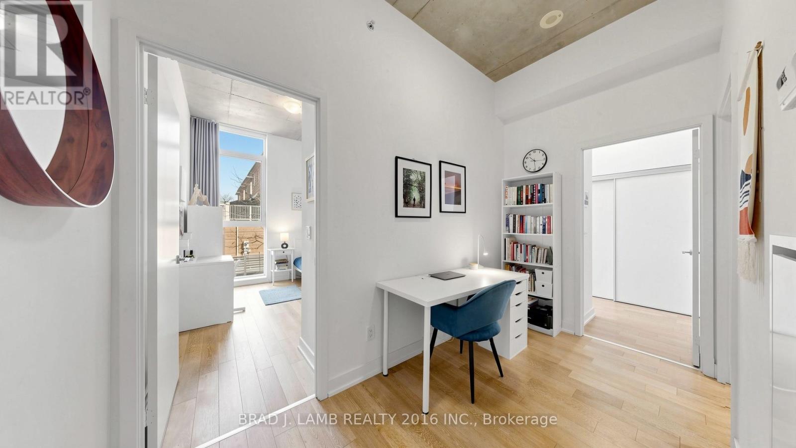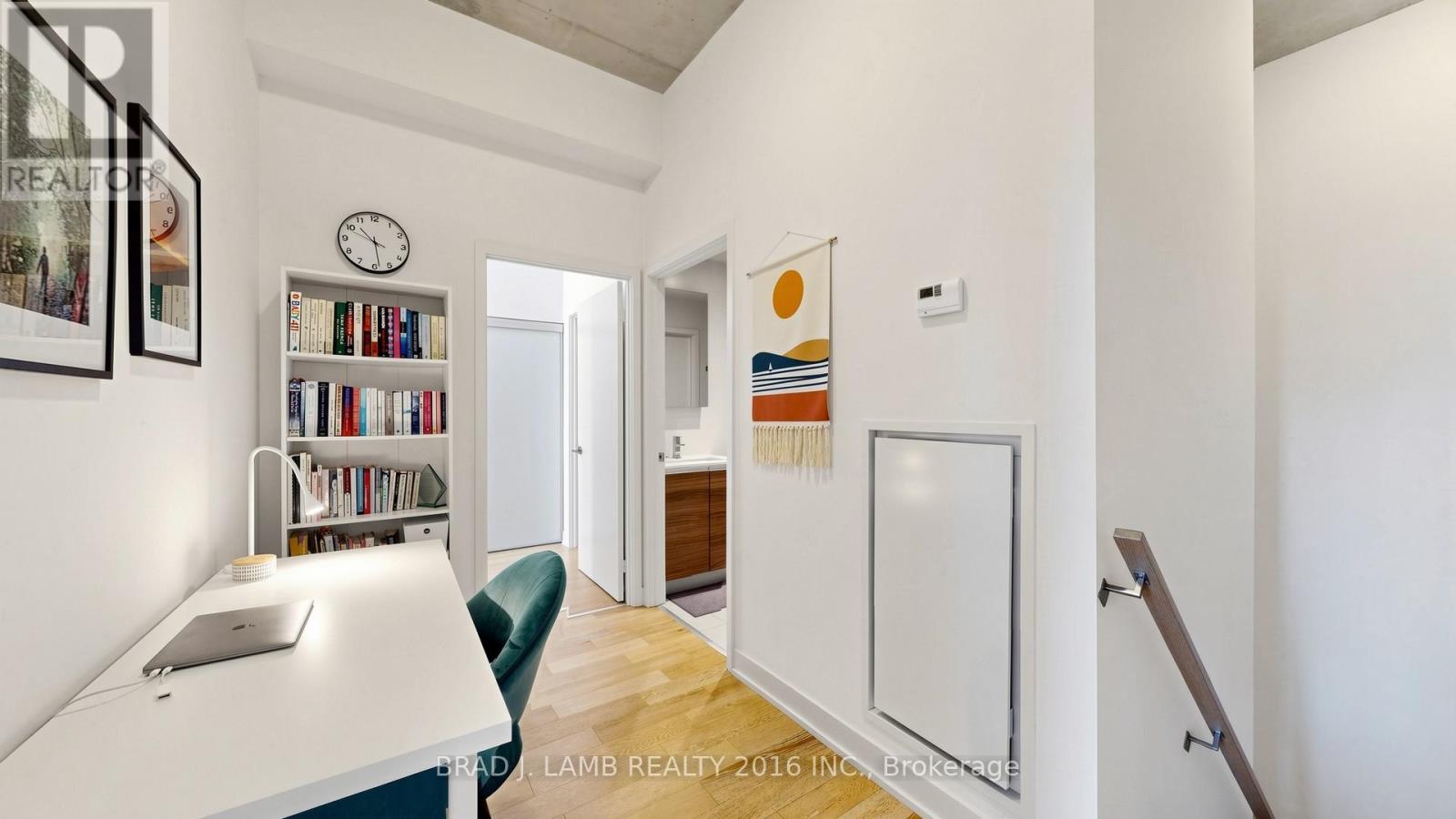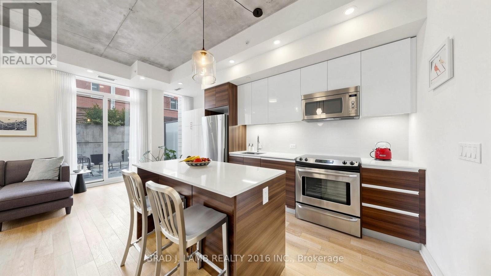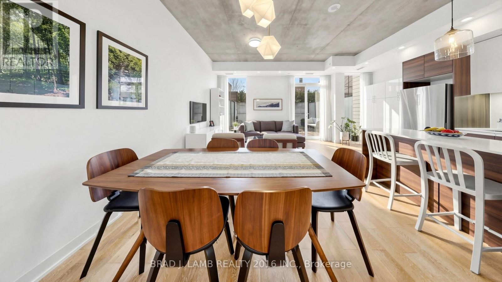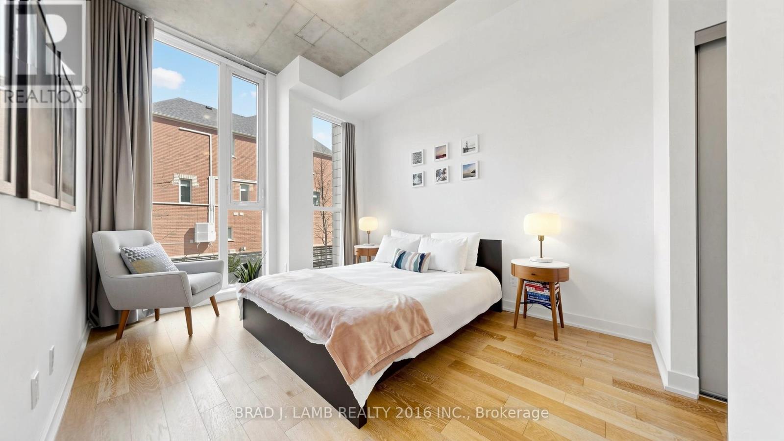 $703.22 MonthlyModern townhouse living with a 300 square foot backyard in the heart of Leslieville at TheTaylor, Streetcar Developments flagship collection of luxury homes. Two bedroom plus den,three baths, two floors, 10 foot ceilings, great floorplan make the most of the 1100 squarefeet of interior space. Gas hookup and hose bib on the terrace, lots of storage andunderground parking included. Low maintenance, convenient living close to all neighbourhoodamenities. (id:50787)