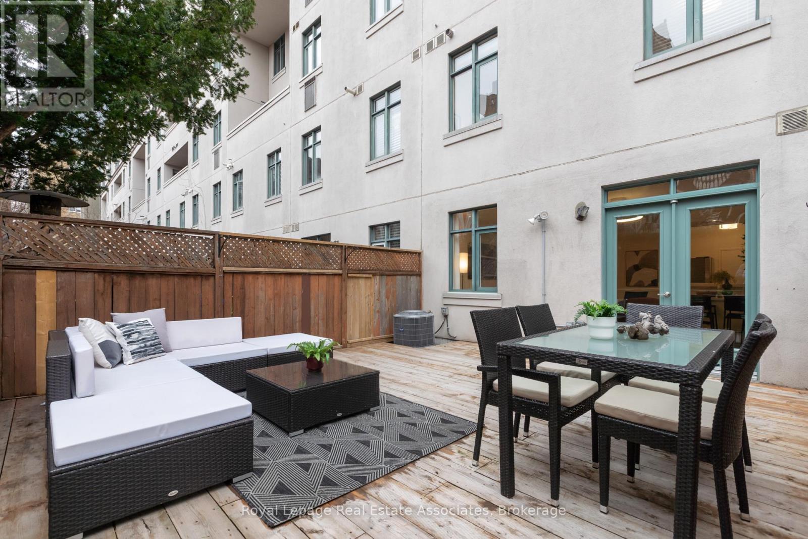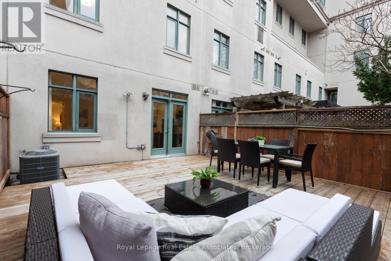 $950 MonthlyFinally! Your chance to own one of the most coveted addresses in the Fashion District. Only 3 townhomes at Five Hundred Richmond have come to market in the past 3 years, and they all sold, even "in this market." They're that rare. Welcome to the Fashion District's best-kept secret: a perfect townhouse on the quiet side of the building, with a 400+ sq ft terrace that feels more backyard than condo. Private, sunny in the afternoon, shielded by a tall wall so the only thing you'll hear is the sound of your own grill. The main floor is a masterclass in what open-concept is supposed to feel like: soaring 9-foot ceilings, premium finishes, elegant pot lighting, and an ultra-wide layout that's versatile enough to reinvent your living space every year if the mood strikes. The primary bedroom features a fully organized, dream walk-in closet. The bathroom? Dual sinks, because you like your significant other and you'd like to keep it that way. Consider this step one to not having to download Hinge for the 16th time. The kitchen is equally serious: a walk-in pantry complete with a built-in safe... Granny's secret, ancestral soup recipe stays between you and the walls. Walker's paradise. Rider's paradise. Biker's paradise, with scores of 100, 100, and 92. You are in the absolute heart of it all. Every relevant landmark, restaurant or shop Downtown Toronto has to offer is a walk away. And when the day is finally done, some of the best coffee shops and hotel rooftop terraces in the city are right outside your door, waiting for you. Welcome home! Open House Saturday and Sunday 2-4pm (id:50787)