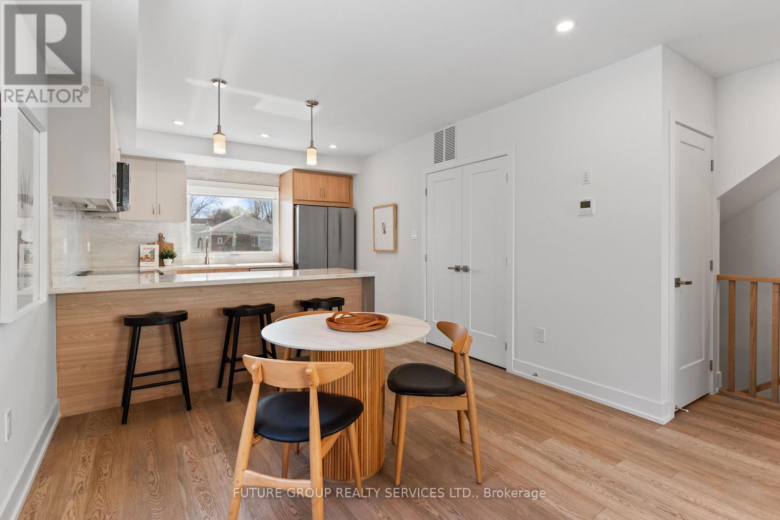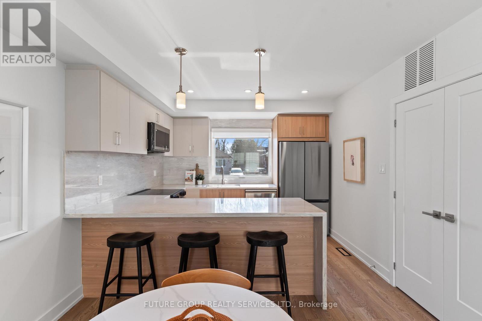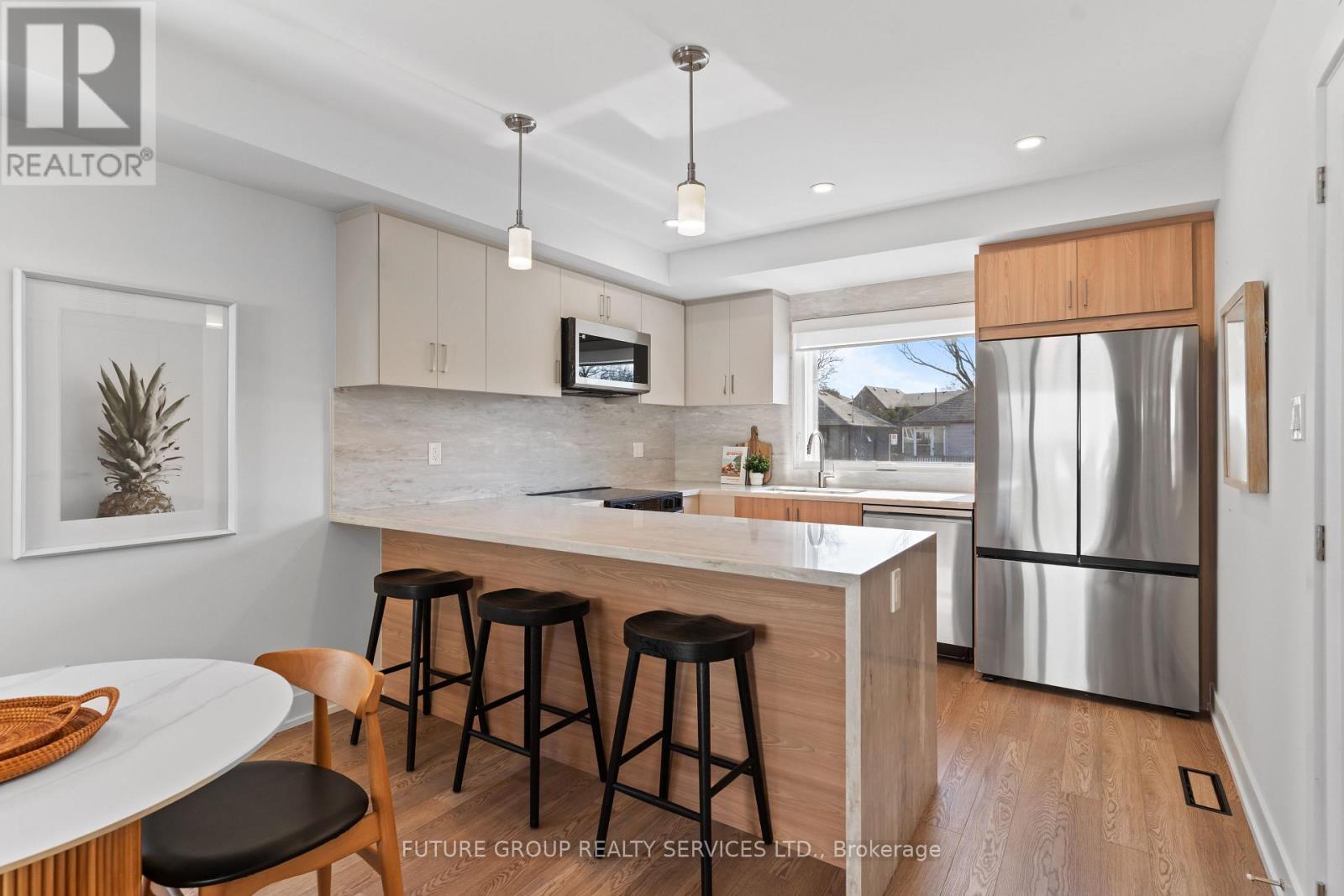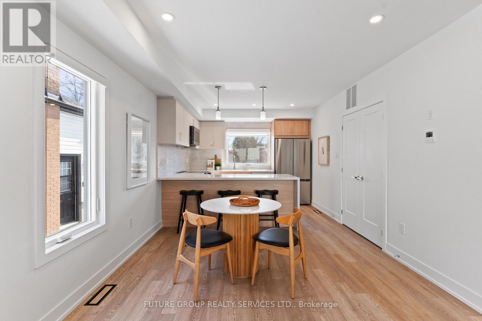 Be the first to live in this newly built home at 15 Acorn Avenue! This luxury 3-bedroom, 2.5-bath suite offers over 1,150 sq. ft. of modern living across two thoughtfully designed levels. Flooded with natural light, the spacious layout features soaring 9-foot ceilings and upscale finishes throughout. The custom kitchen includes a quartz peninsula with a waterfall edge, soft-close cabinetry and drawers, and stainless steel appliances. In-suite laundry plus central heating and air conditioning add everyday comfort and convenience, while smart locks with app-controlled keyless entry and exterior cameras provide peace of mind. The primary bedroom is outfitted with a built-in closet system featuring double rods, shelving, and drawers for exceptional organization. With an individually metered, all-electric design and high-performance insulation, you'll enjoy full control over your utilities while keeping costs low. Limited parking available on a first-come, first-served basis. Located in a quiet, family-friendly pocket just steps from daily essentials, 15 Acorn Ave offers a relaxed community vibe with convenient access to Kipling GO and TTC Subway Station, Cloverdale Mall, and major highways-delivering a rare blend of urban convenience and peaceful residential living. (id:50787)