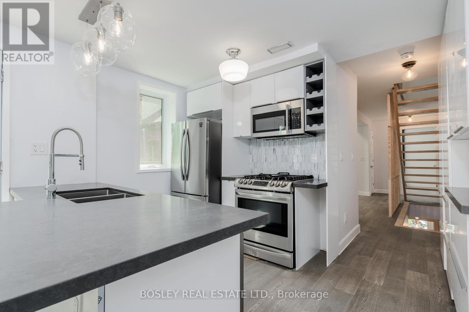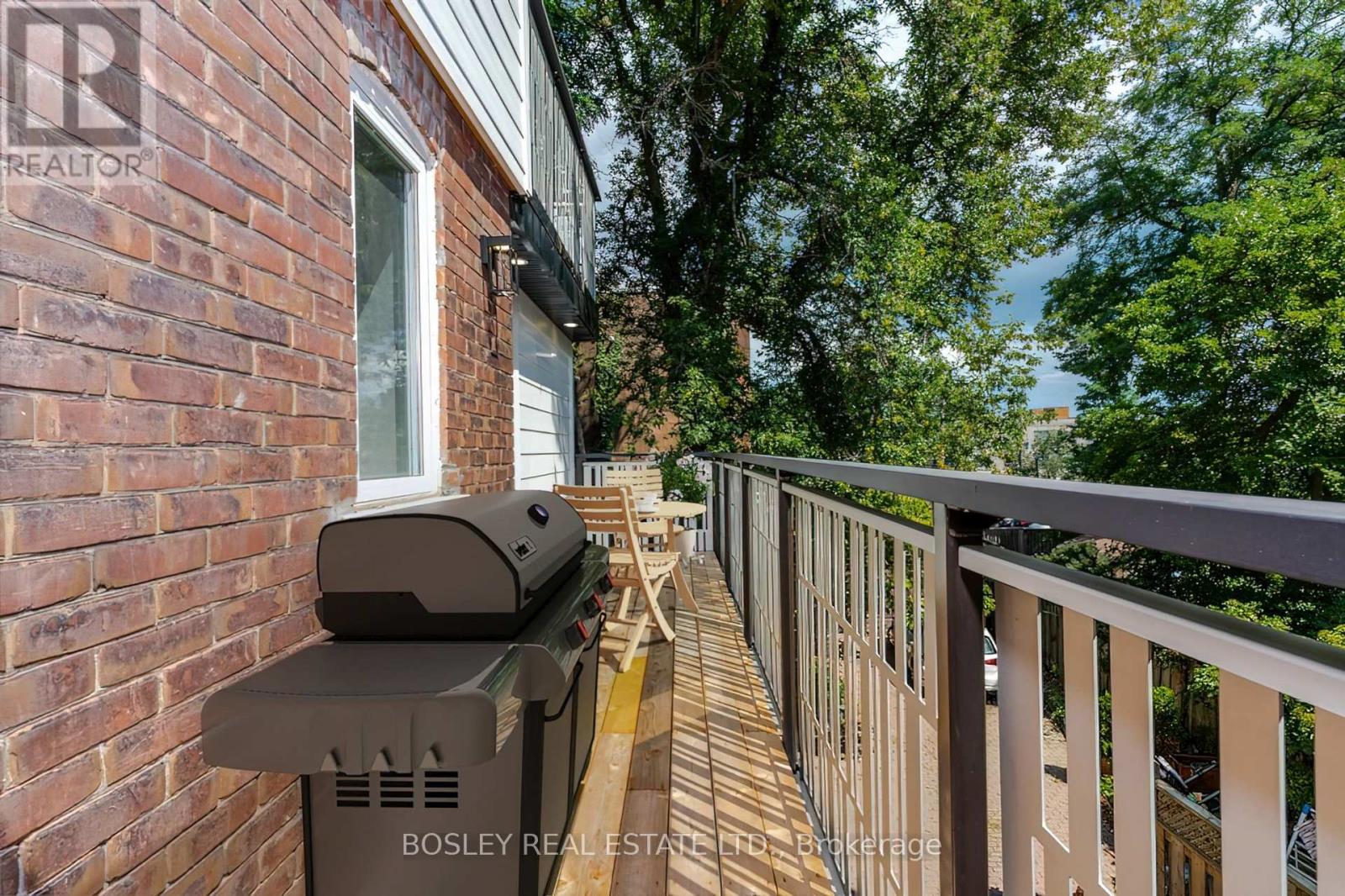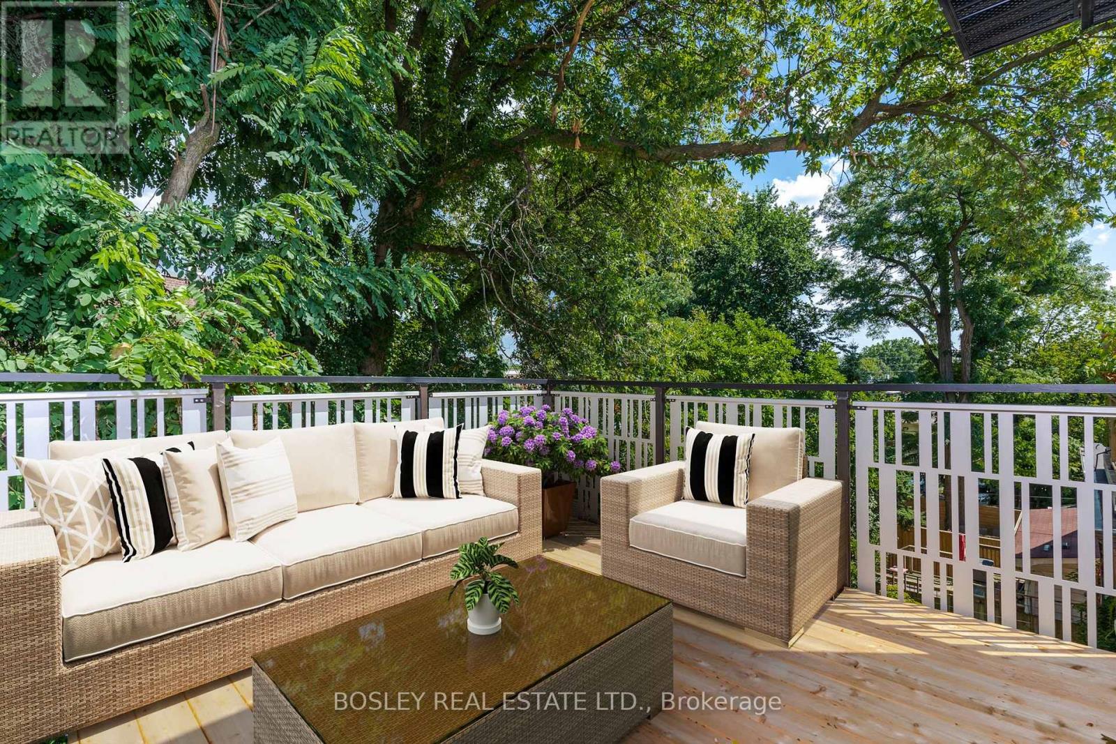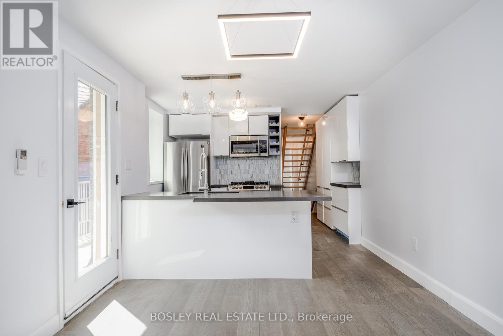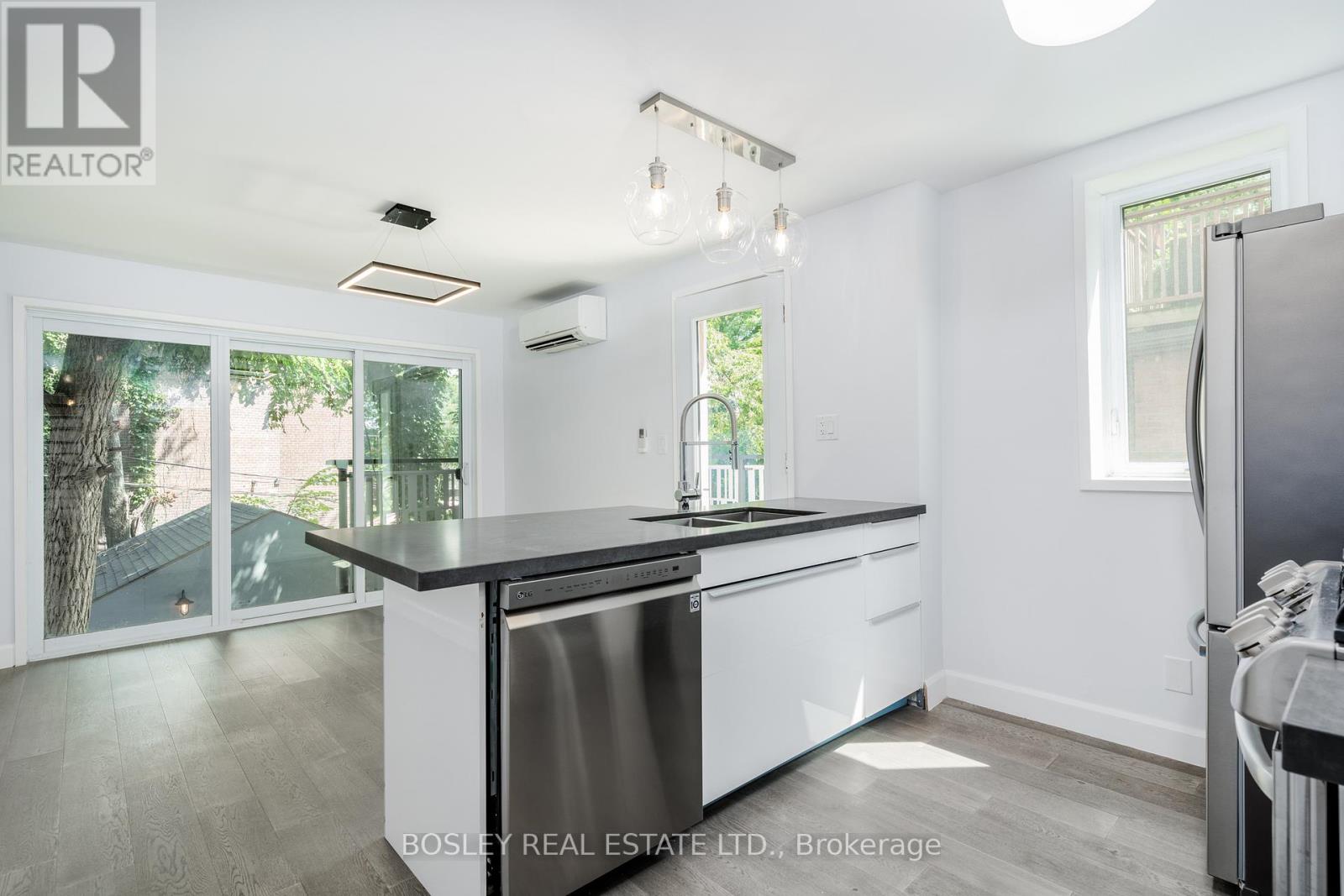 Architecturally designed and masterfully renovated in 2022, this 1,503 sq ft, 2-storey home seamlessly blends clean Scandinavian lines with Mid-Century modern luxury. You'll stay comfortable with 4 Air Conditioning & Heat Pump units (2 per floor),and breathe easier with the Heat Recovery Ventilation (HRV.) Radiant heated floors throughout will keep your feet toasty-warm when it's chilly out. Up the 2nd Floor, the bright eat-in kitchen welcomes the morning sun on two sides, with east-facing floor-to-ceiling windows and Juliette balcony, plus a south-facing walkout balcony. Your inner chef will appreciate the stainless steel gas stove, family-sized fridge, built-in dishwasher and over-the-range microwave oven. The cozy central living room beckons you to relax and unwind, which also walks out to the balcony connected to the kitchen. A lovely 3-piece bath is located next to the living room. At the far end, the primary bedroom is graced by a delightful west-facing bay window to catch the evening sunsets. Up the floating stairs to the 3rd Floor, discover a 4-piece bath with a double sink and shower, a convenient stacked laundry closet in the hall, and two additional bedrooms - perfect for kids, a home office or weekend guests. The lofty open den is the ideal spot to curl up with a book; from the den, walk out the glass balcony doors to a sun-soaked private rooftop terrace. An electric vehicle charger is available and sub-metered to the hydro utility. Parking at the back of the property is available at an additional $100 (ideal for smaller vehicles, not over-sized SUVs.) Steps away to Kew Gardens, Kew Beach, the Boardwalk, Schools, Recreation Centre, Library, and all of the vibrant shops, cafés & restaurants along Queen Street. This culturally rich, beachside neighbourhood offers a peaceful residential setting, with quick & easy access to the to the city's busy downtown core. This is it, come live your best life by the beach! (id:50787)