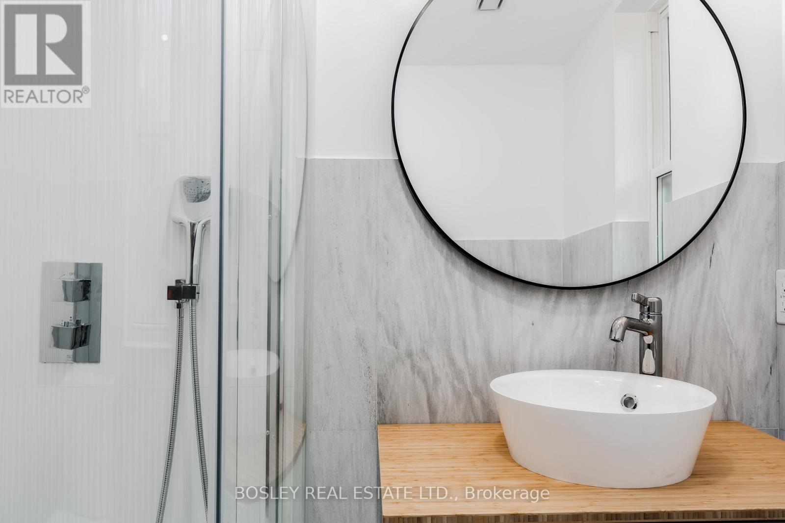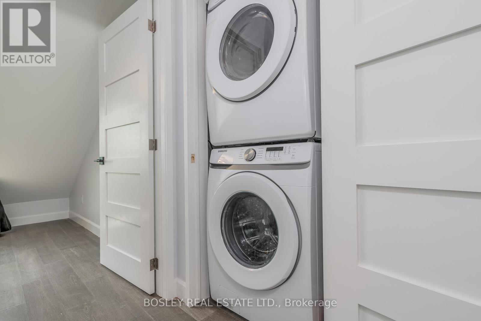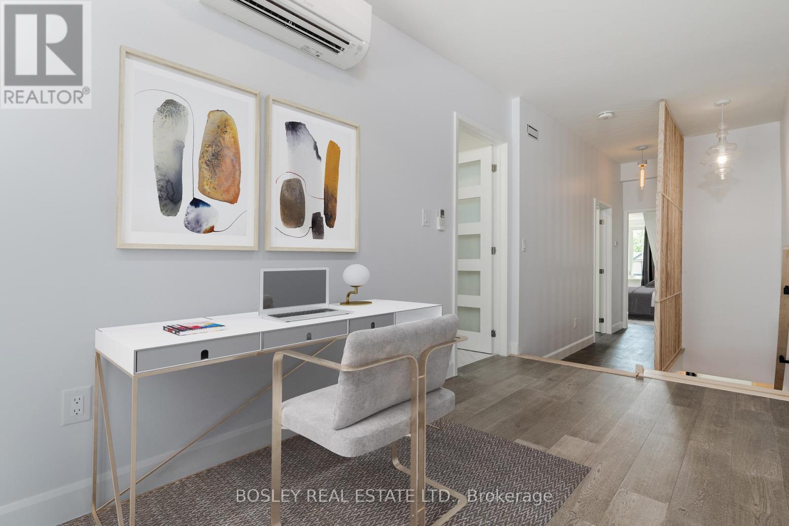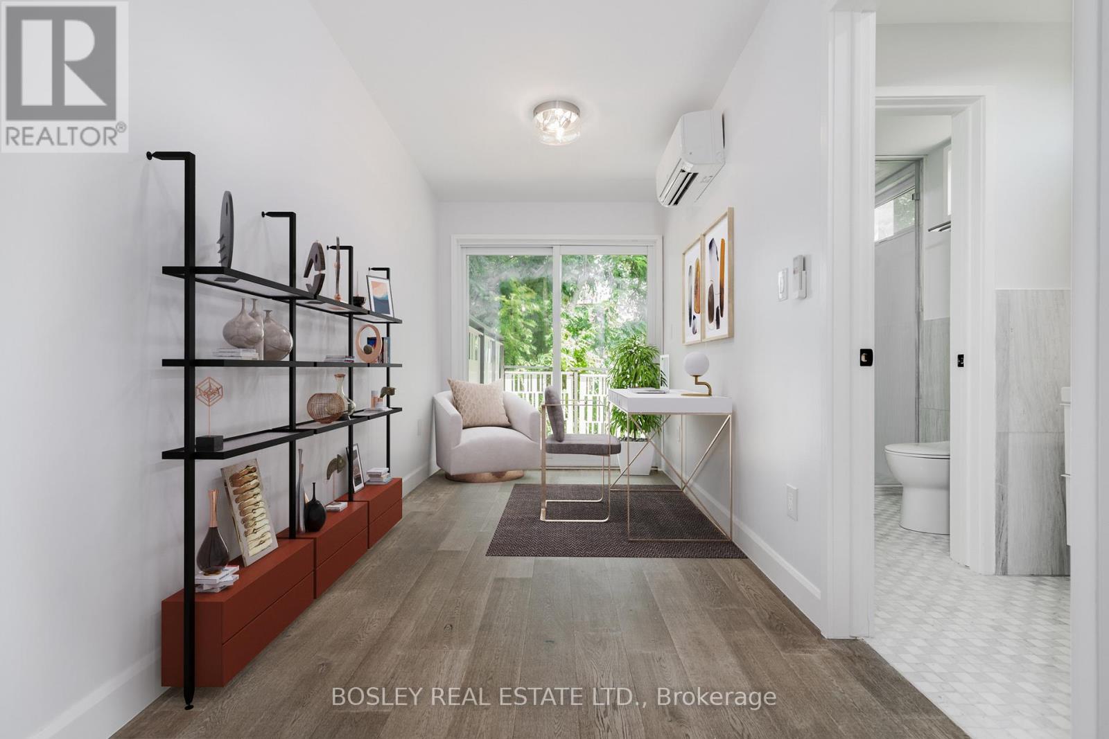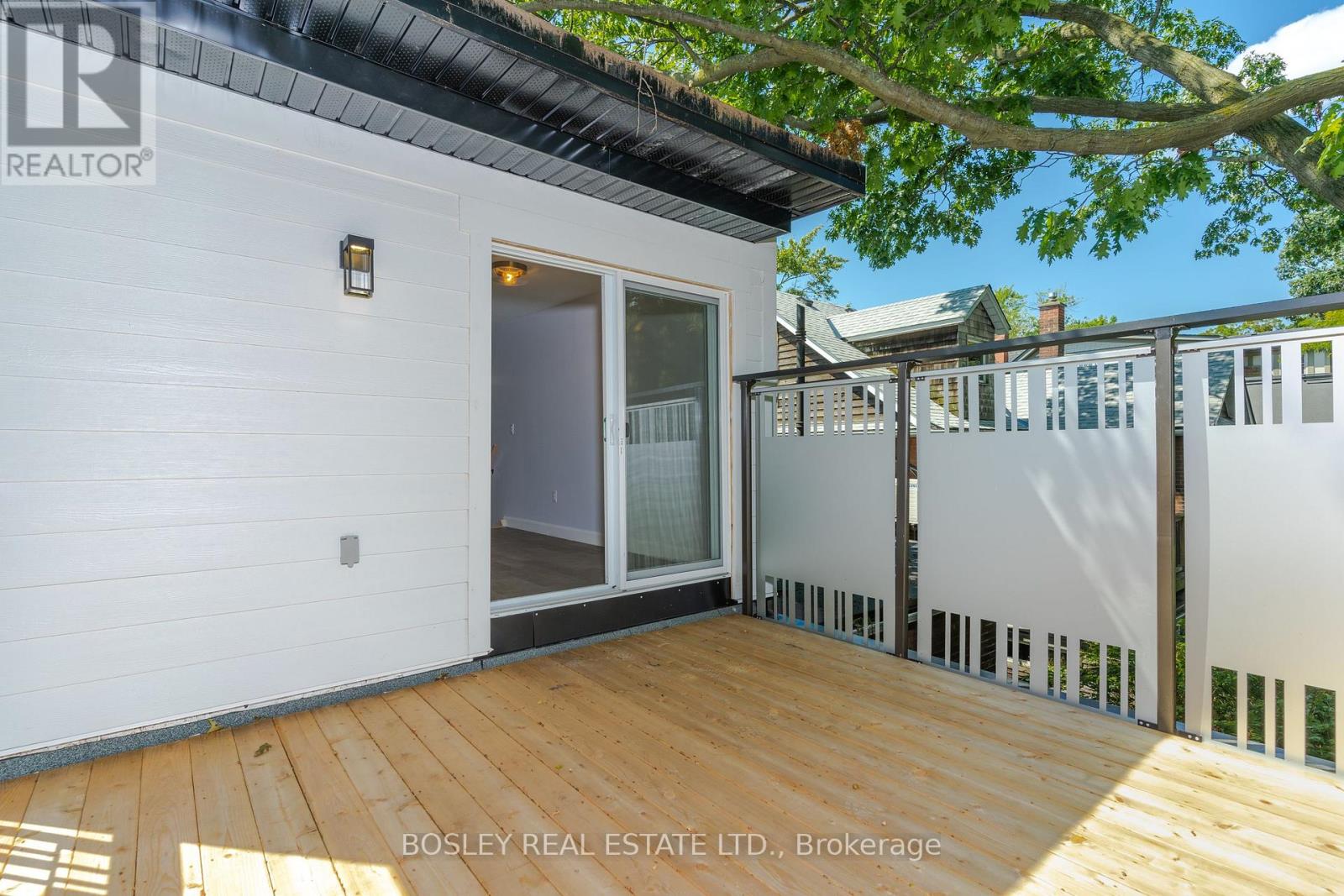 Architecturally designed and masterfully renovated in 2022, this 1,503 sq ft, 2-storey home seamlessly blends clean Scandinavian lines with Mid-Century modern luxury. You'll stay comfortable with 4 Air Conditioning & Heat Pump units (2 per floor),and breathe easier with the Heat Recovery Ventilation (HRV.) Radiant heated floors throughout will keep your feet toasty-warm when it's chilly out. Up the 2nd Floor, the bright eat-in kitchen welcomes the morning sun on two sides, with east-facing floor-to-ceiling windows and Juliette balcony, plus a south-facing walkout balcony. Your inner chef will appreciate the stainless steel gas stove, family-sized fridge, built-in dishwasher and over-the-range microwave oven. The cozy central living room beckons you to relax and unwind, which also walks out to the balcony connected to the kitchen. A lovely 3-piece bath is located next to the living room. At the far end, the primary bedroom is graced by a delightful west-facing bay window to catch the evening sunsets. Up the floating stairs to the 3rd Floor, discover a 4-piece bath with a double sink and shower, a convenient stacked laundry closet in the hall, and two additional bedrooms - perfect for kids, a home office or weekend guests. The lofty open den is the ideal spot to curl up with a book; from the den, walk out the glass balcony doors to a sun-soaked private rooftop terrace. An electric vehicle charger is available and sub-metered to the hydro utility. Parking at the back of the property is available at an additional $100 (ideal for smaller vehicles, not over-sized SUVs.) Steps away to Kew Gardens, Kew Beach, the Boardwalk, Schools, Recreation Centre, Library, and all of the vibrant shops, cafés & restaurants along Queen Street. This culturally rich, beachside neighbourhood offers a peaceful residential setting, with quick & easy access to the to the city's busy downtown core. This is it, come live your best life by the beach! (id:50787)